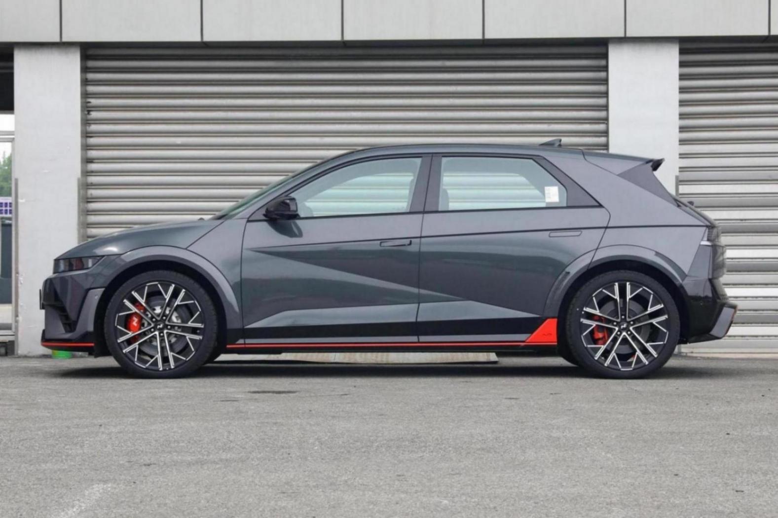 現代IONIQ 5 N在外觀方面,還是很有個性的,車頭給人的運動感也是比較強烈,LED燈帶貫穿整個車頭,亮起后有著不錯的視覺效果,品牌LOGO采用黑色涂裝,表明其是高性能車型,前后包圍和側裙均增加了紅色涂裝,提升了整車的運動感,尾燈中間還提供品牌字母標識。