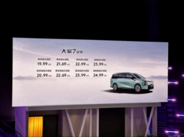6月7日,上汽大通大家7超混版正式上市,售價19.99-24.99萬元,新車搭載了1.5T插電混動系統,CLTC工況純電續航最高230公里,定位中型MPV。