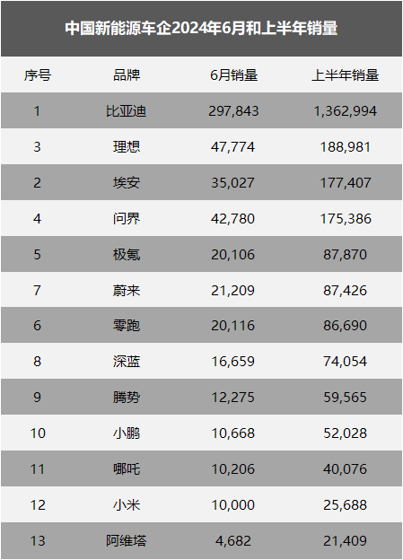 隨著2024年上半年的結(jié)束,我們已經(jīng)能初步了解各大車企在上半年的銷量表現(xiàn),本文給大家分享下新能源車企的6月以及上半年銷量排名。何為新能源車企?意指那些已經(jīng)不銷售燃油車,只銷售混動(dòng)或純電動(dòng)產(chǎn)品的車企。