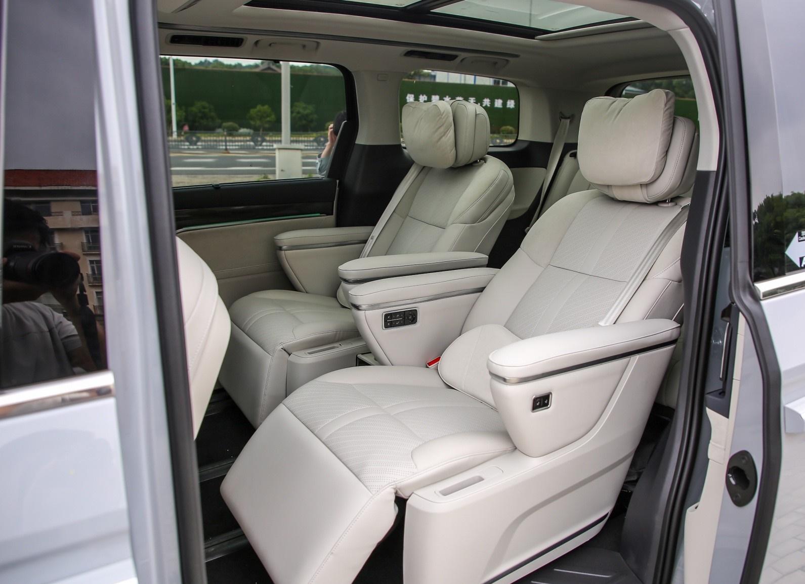 車身尺寸方面,新車長寬高分別為5270/2000/1848mm,軸距3200mm。大尺寸的車身讓車內(nèi)的空間表現(xiàn)很出色,第二排為獨立的航空座椅設(shè)計,擁有著座椅按摩、加熱、通風以及腿托設(shè)計,乘坐起來也是很舒適的。