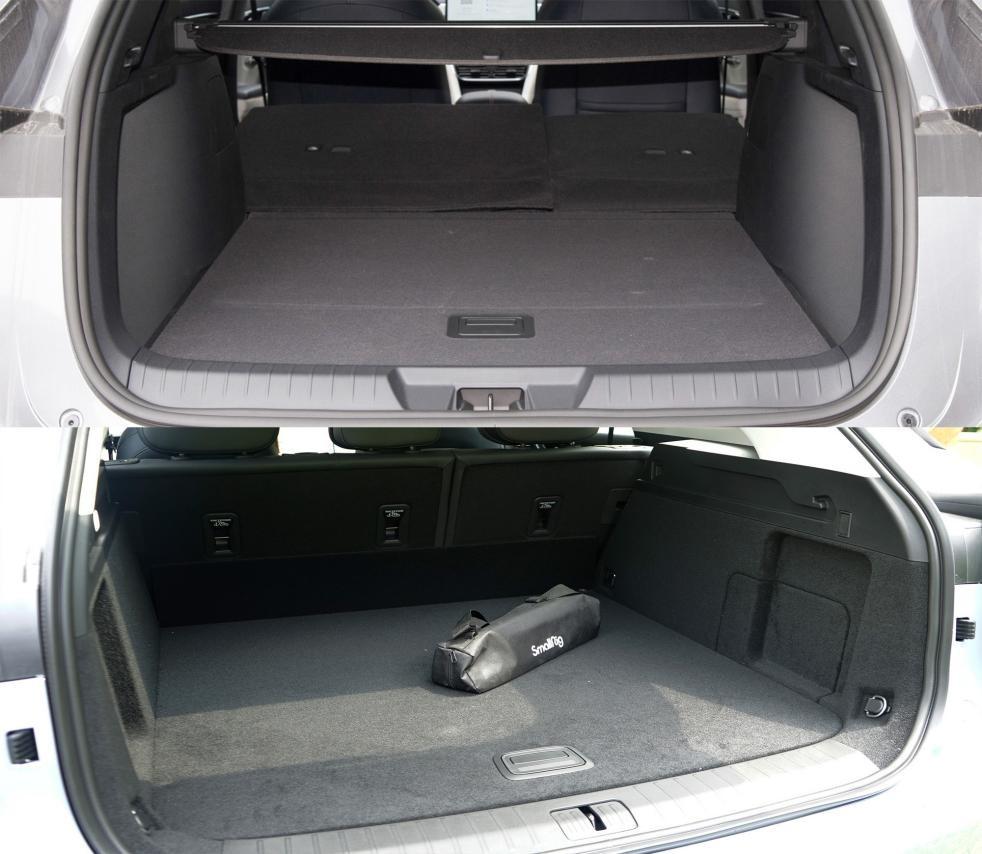 宋PLUS DM-i榮耀版尾廂常規(guī)容積為574L,后排座椅支持4:6比例分割放倒,最大裝載容積可拓展至1600L。風(fēng)云T9五座版的尾廂容積很大,常規(guī)容積有815L,縱深十分出色。七座版在后排使用時(shí),尾廂深度減少很多,但后排座椅可5:5分割放倒,空間拓展性較好。