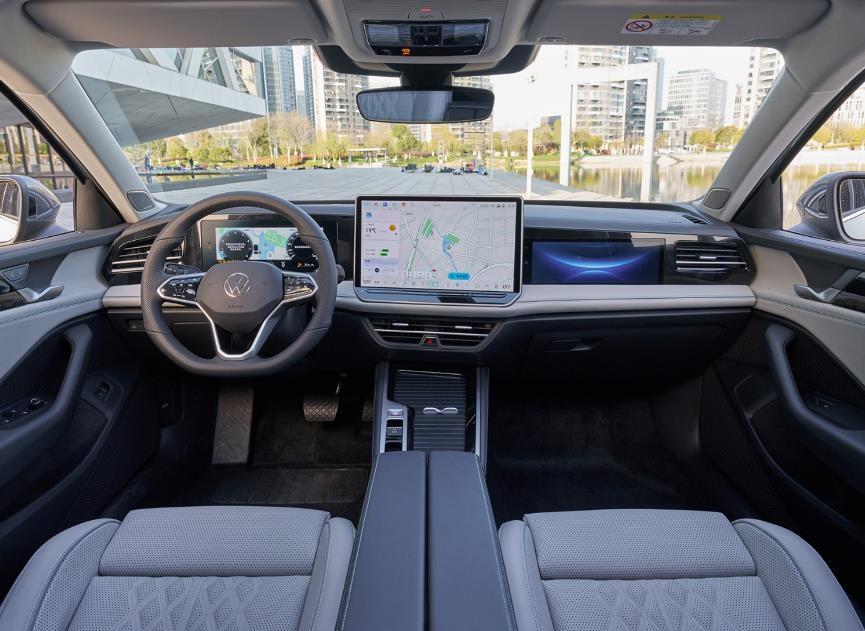 內飾部分,全新一代邁騰的變化也很明顯,整個儀表臺從左至右依次是10.25英寸液晶儀表,15英寸中控大屏和11.6英寸副駕娛樂屏。其中中控屏是朝主駕一側傾斜的,突出了駕駛者的重要地位,而副駕也有了專屬的娛樂屏幕,這在燃油車中并不多見。另外,全新一代邁騰還搭載了高通驍龍8155芯片,整個車機系統的流暢性相對于老款有了質的提升。