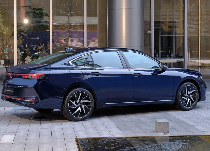 全新一代邁騰是基于MQB-B平臺打造,與海外版只有旅行版不同,國產的全新一代邁騰采用了三廂轎車造型,車身尺寸為4990mm/1854mm/1487mm,軸距2871mm,相比老款長寬高分別增加了124mm、22mm、8mm,但軸距沒變。