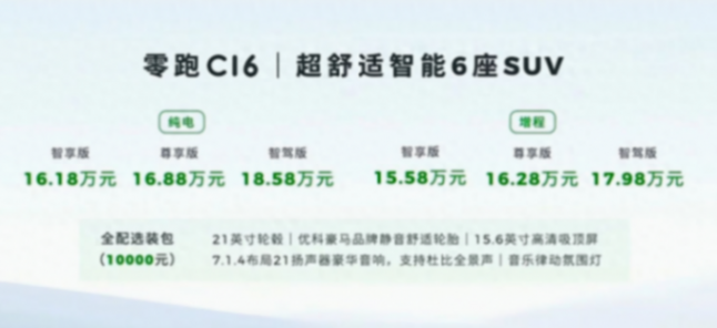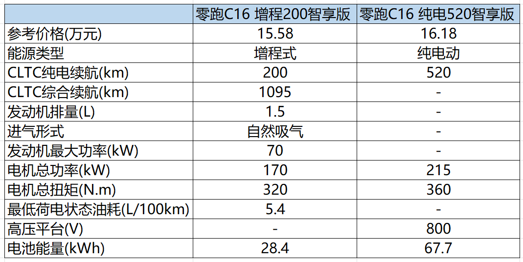 3款增程,3款純電 頂配不到19萬的零跑C16如何選?