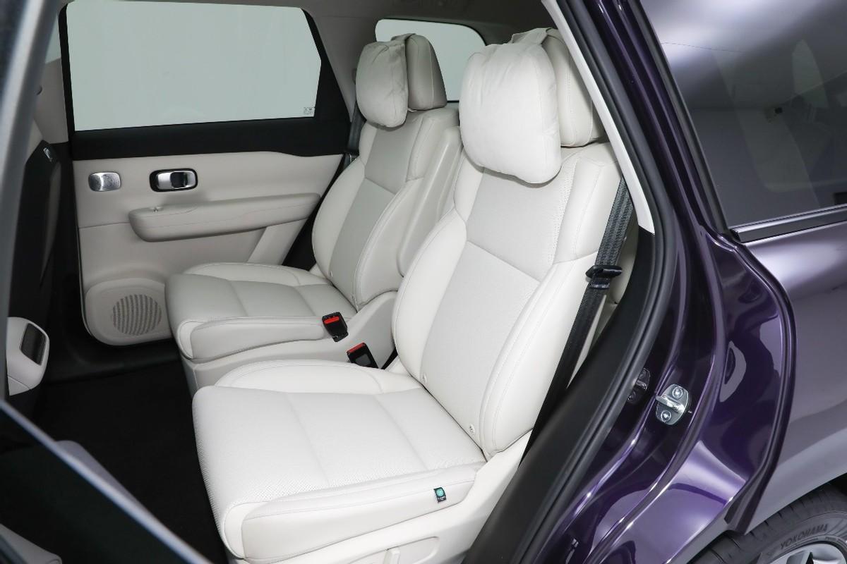內部座椅的布局是2+2+2,第二排跟MPV一樣是兩個獨立座椅,除具備前后以及靠背的大角度調節之外,還配備了加熱和通風功能,包括前排座椅后邊的小桌板也沒有落下,功能上在向MPV看齊。