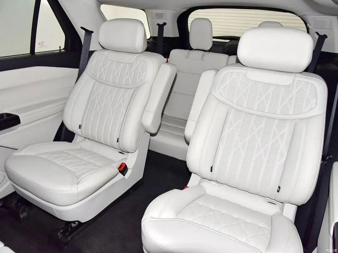 當(dāng)然,探險(xiǎn)者最大的亮點(diǎn)還是他的空間和舒適性。全新福特探險(xiǎn)者作為一臺(tái)大六座SUV,后排兩張獨(dú)立座椅規(guī)格相當(dāng)高,都快可以媲美一些同價(jià)位的MPV車型了,而且新車的第三排座椅盡管是兩座,但也是連體式座椅,再翻倒之后可以形成一個(gè)基本平整的巨大后備箱空間,昆侖巔峰版車型大量使用翻毛皮材質(zhì)點(diǎn)綴,中央通道、中控臺(tái)等位置上加入等高線。