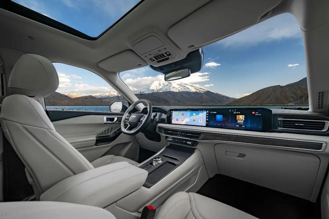 內(nèi)飾方面,全新福特探險(xiǎn)者配備了全液晶儀表盤和27英寸的中控大橫屏的組合。屏幕內(nèi)部升級(jí)了SYNC+3.0智行信息娛樂系統(tǒng),并結(jié)合了百度AI技術(shù)提升語音識(shí)別效率。
