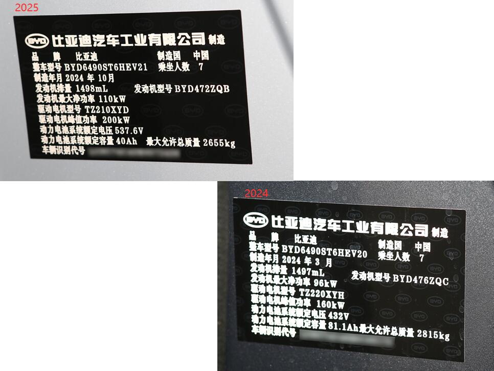新款:搭載了第五代DM插電混動技術,發動機最大功率提升至115kW,電機最大功率達到200kW。同時,新款車型的饋電百公里油耗也降低了0.1升。