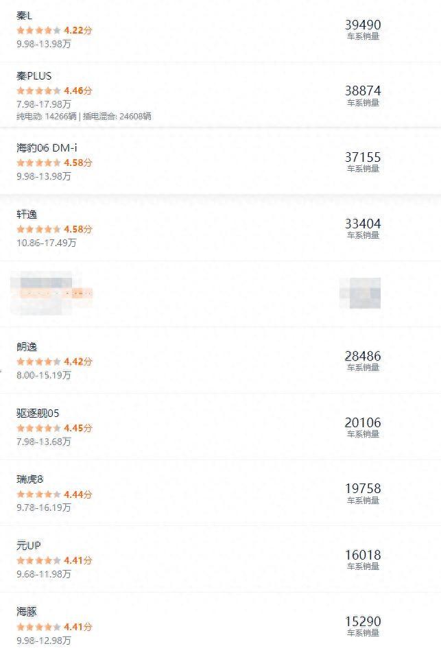 從價(jià)格上看,符合條件的最熱門車型有秦L、秦PLUS、海豹06 DM-i、軒逸、朗逸、驅(qū)逐艦05、瑞虎8、元UP、海豚。同時(shí),這些車型9月銷都在1.5萬(wàn)以上。