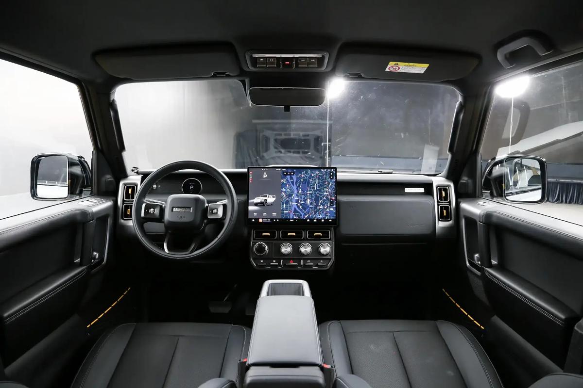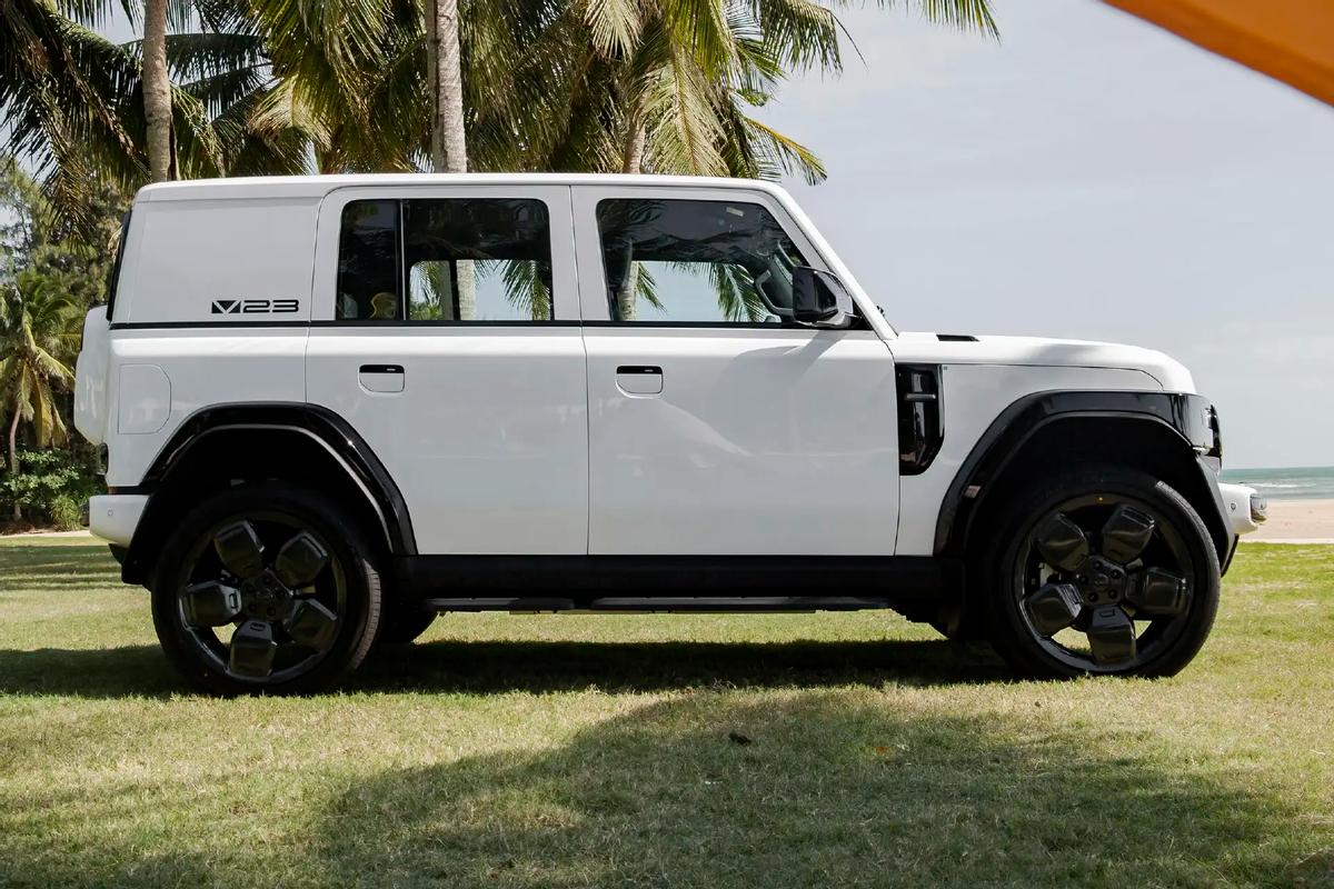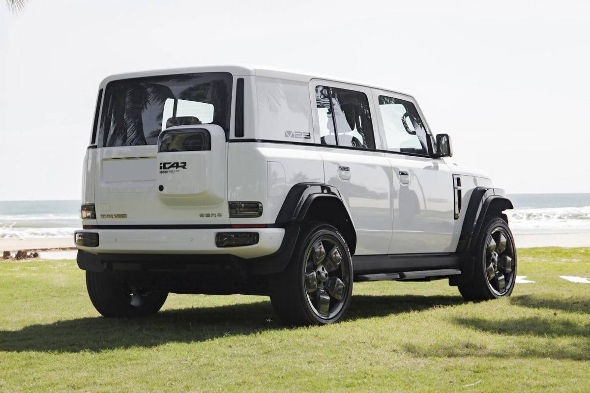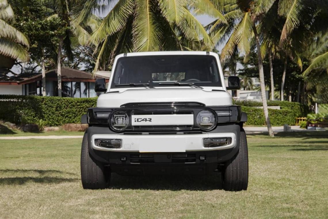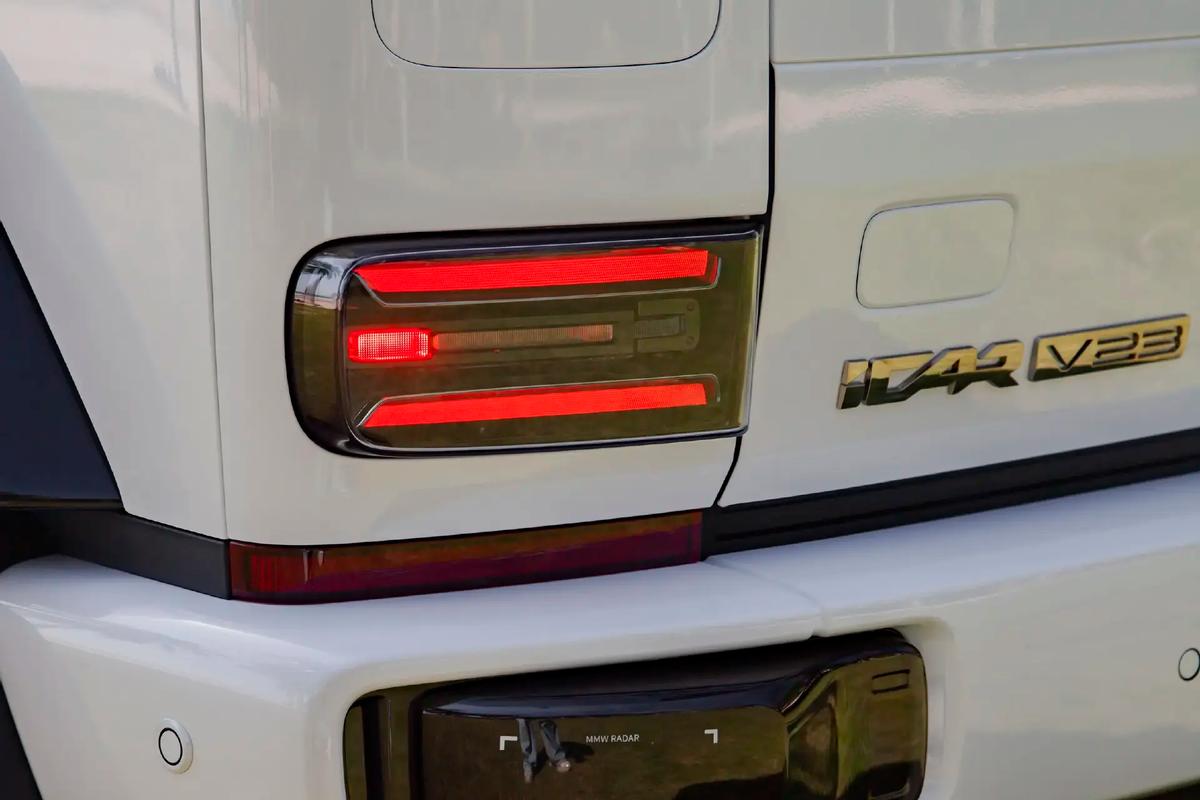 iCAR V23擁有越野車經(jīng)典的方盒子造型,但從風(fēng)格上來說,它雖然沒有奔馳G級的邊框那么鋒利、也沒有后者那么寬大,但依舊會介于路虎攬勝與奔馳大G之間。特別是在使用圓形復(fù)古大燈,并提供了多功能行李架、前保險杠防撞欄、運動側(cè)裙與踏腳板等配件的情況下,iCAR V23的“野性”是肉眼可見的。