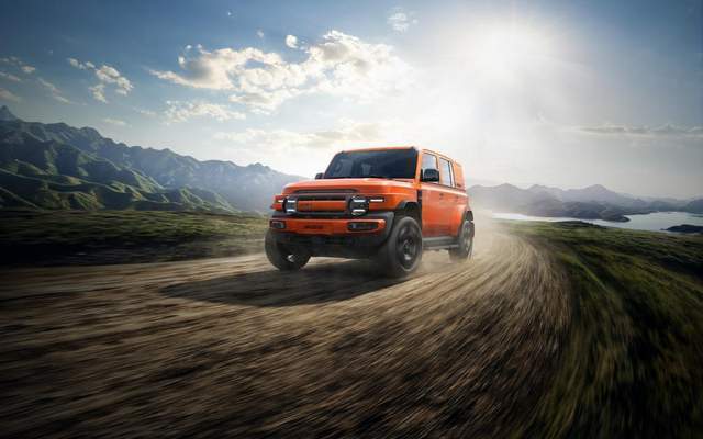 V23不僅在設計上致敬經典,更融合當下新能源設計的趨勢,打造出獨一無二的視覺體驗。V23造型方正硬朗,車身尺寸長4220mm、寬1915mm、高1845mm,接近1:1的高寬比,配合21吋大輪轂,賦予整車超越同級的體量感和視覺沖擊力。圓形大燈、固定式側踏板、C柱盲窗等經典越野元素,與現代科技外露式四角透明毫米波雷達罩、立體懸浮式“小書包”、樂高模塊剎車尾燈等設計相結合,使V23既“復古經典”又“科技賽博”。