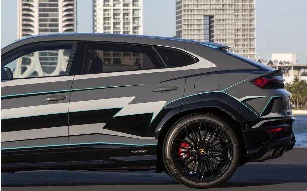外觀方面,這臺蘭博基尼Urus SE的特殊涂裝除了正常的工序之外,還需要進行230個小時的特別涂裝工程以及測試,這種混合了高光材料并利用灰色和黑色對比度的設計,極大的彰顯出了邁阿密特色的文化風格和藝術品味。
