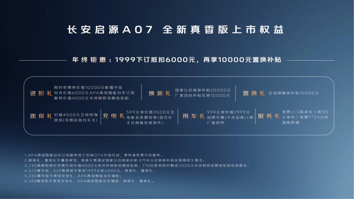 長安啟源A07全新真香版的上市,不僅是對長安啟源創(chuàng)新實力的展示,更是其“以客戶為中心”理念的體現(xiàn)。為了慶祝長安造車40年,長安啟源推出了多項優(yōu)惠政策,包括1999元抵6000元購車款和10000元置換補貼等。這些舉措不僅體現(xiàn)了長安啟源對用戶的關懷,更展示了其在數(shù)智新汽車時代的創(chuàng)新實力和市場競爭力。