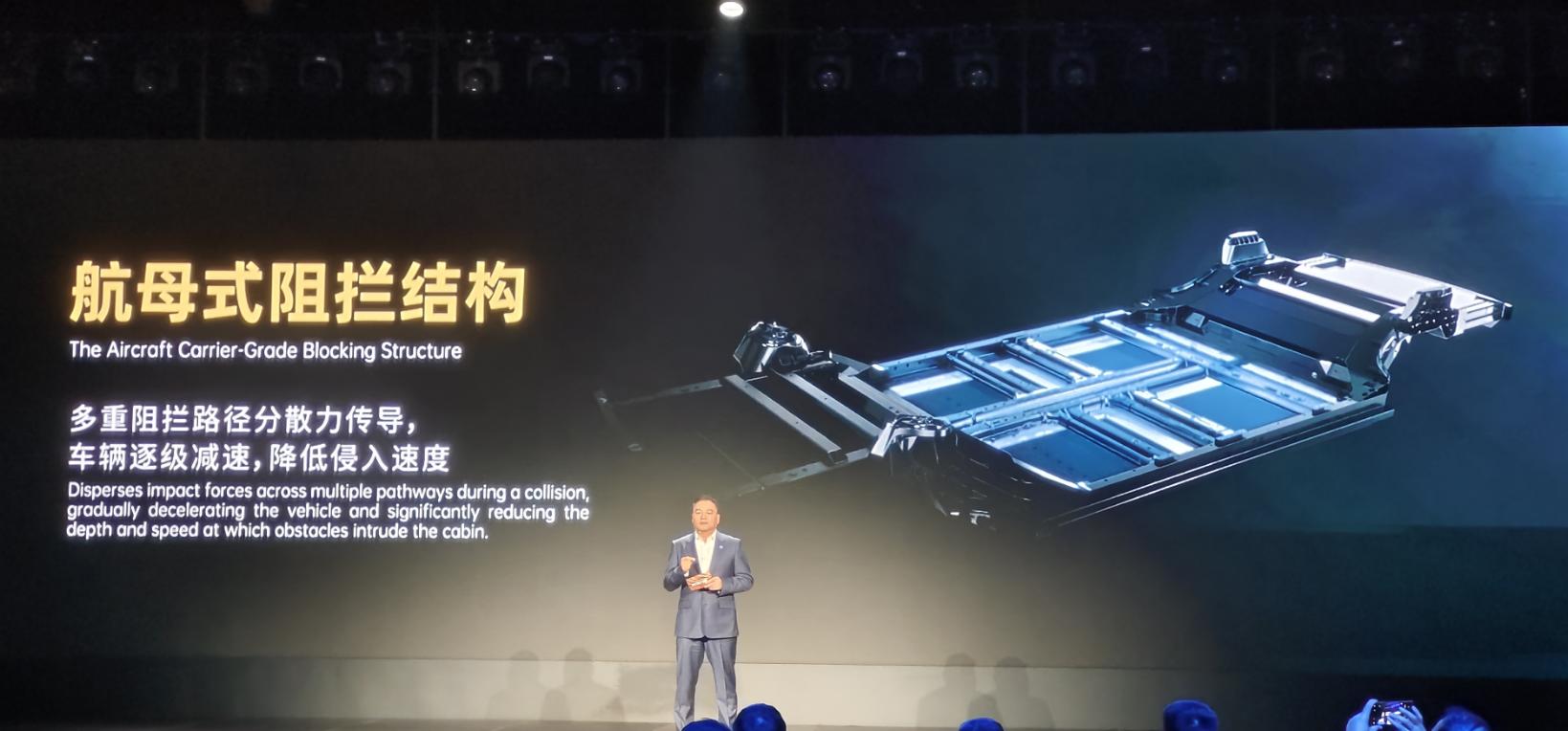 在結構安全方面,磐石底盤采用了立體式仿生龜甲結構,實現了車體結構與能量艙結構的深度耦合,并疊加了航母式阻攔結構。這種設計在受到撞擊時,能夠有效減緩底盤侵入和減少能量艙變形。此外,底盤還使用了2000MPa級潛艇級熱成型鋼和600MPa級航天級鋁合金等高強度材料,以增強結構剛性。