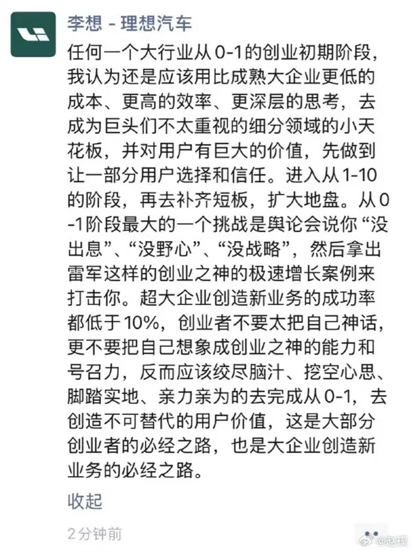 極越事件尚在幾方協(xié)同處理中,圈內(nèi)不少人也都讀到了夏一平的反思小作文。網(wǎng)傳久未冒泡的李想發(fā)了一個(gè)朋友圈。