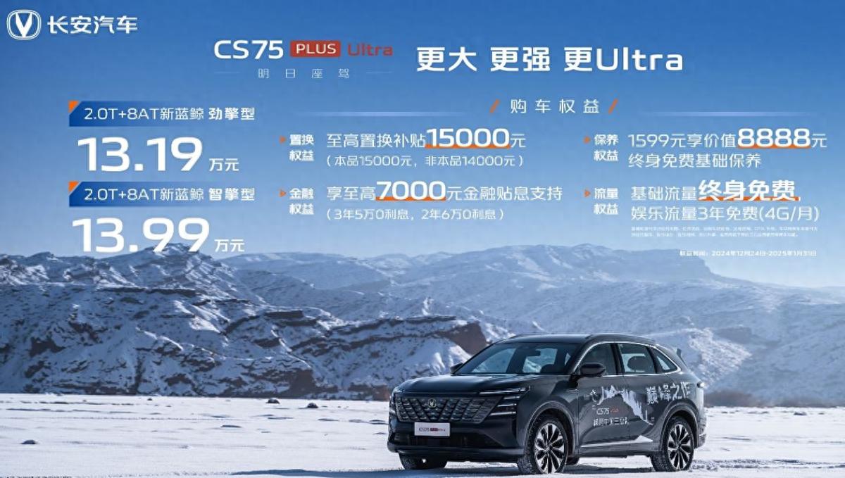 就在昨天,長安CS75 PLUS Ultra迎來了正式上市!據悉,新車共推出了2款配置,售價分別為13.19萬元和13.99萬元。如果有感興趣的小伙伴,可以來了解一下。