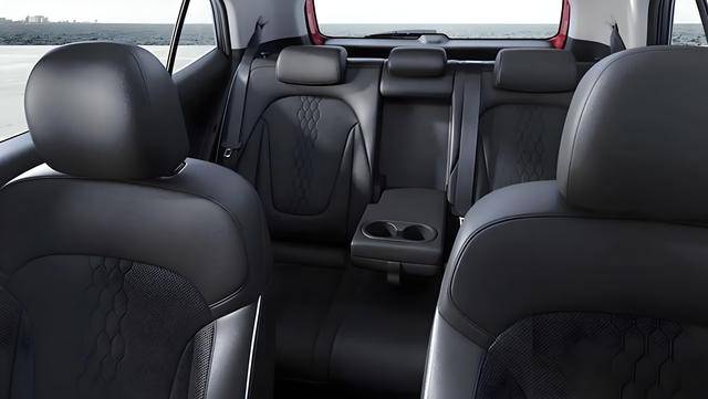 車身采用了小型SUV車型常用的車身輪廓,黑色的車頂、黑色的A柱、加寬加厚的黑色B柱、黑色的C柱與全車黑色隱私玻璃融為一體,與湛藍色的車身形成了鮮明的對比,營造出懸浮式的立體效果。造型立體的腰線配合著黑色的輪眉和側裙,并將配備17英寸低風阻輪圈,增添了更多的硬派氣息。車身尺寸方面,全新的現代Creta長度為4315mm,寬度為1790mm,高度為1630mm,軸距為2610mm。這使得它成為現代汽車公司B-SUV產品中最大的產品,位于Venue、Bayon和之上。車內采用了傳統的5座布局,配備了5個織物沙發座椅,還帶有8個揚聲器的BOSE高級音響系統、前排座椅通風,空氣凈化系統,環境照明,前后排USB端口,以及無線充電板,配置更加豐富。