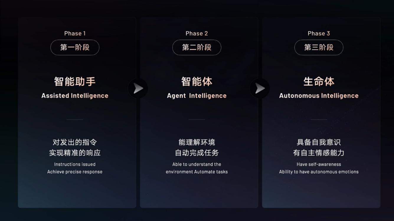 在吉利看來(lái),智能汽車將經(jīng)歷“智能助手”、“智能體”和“生命體”三個(gè)發(fā)展階段,通過(guò)“本體+智能”的不斷迭代,最終成長(zhǎng)為有溫度、有情感的“出行智慧生命體”。