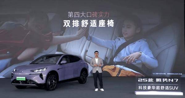內飾方面,新款騰勢N7同樣不遺余力。全系標配豪華AI座艙,搭載了16揚聲器的帝瓦雷音箱,以及NAPPA真皮座椅等高端配置。車輛還提供了前后排座椅電動調節、通風、加熱以及10點式按摩功能。副駕駛座椅更是升級為帶腿托和副駕駛屏幕的“寵愛副駕”,后排座椅則加入了7英寸多功能扶手屏,并支持111°電動靠背調節,為乘客帶來極致的乘坐體驗。