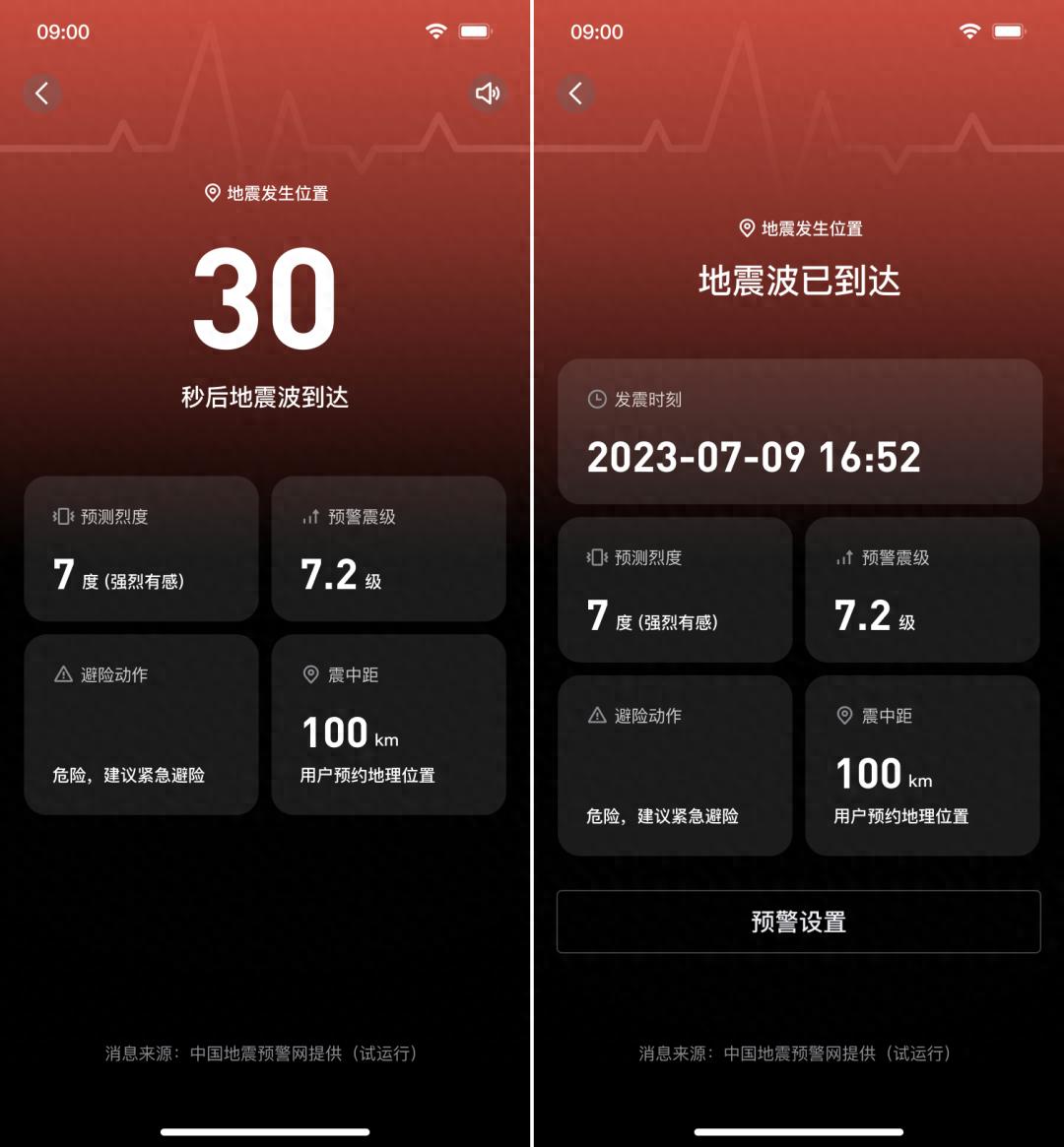 在預(yù)警通知方面,根據(jù)地震影響程度的不同,用戶會收到不同的預(yù)警顏色和提示語。