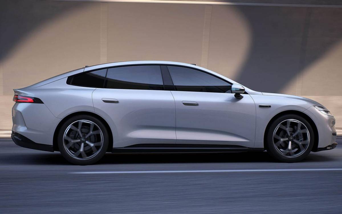 側面采用無邊框車門、隱藏式車門把手、無邊框后視鏡、大尺寸輪圈以及隱藏式水切設計,優化車輛風阻系數的同時,也讓這款車看上去更精致。