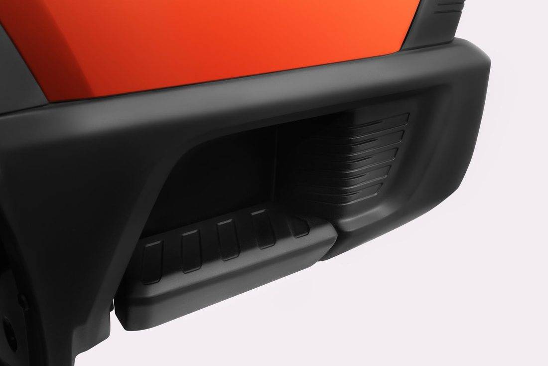 貨箱區(qū)域的后保險杠分區(qū)踩踏設(shè)計堪稱神來之筆——290×150mm側(cè)面踏板搭配12度傾斜踏面,用戶可根據(jù)貨物位置自由選擇踩踏區(qū)域,裝卸效率提升的同時,也避免了踩輪胎上下后斗裝載的安全隱患。
