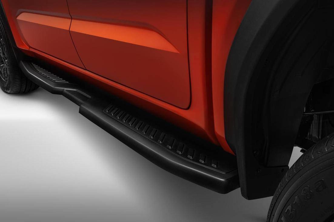傳統(tǒng)皮卡車型的上下車踏板設(shè)計,往往在實(shí)用性和細(xì)節(jié)上有所欠缺:要么寬度不足導(dǎo)致踩空風(fēng)險,裝卸貨時缺乏攀爬支點(diǎn),只能踩輪胎或后保險杠,存在一定安全隱患。對比同級車型,威麟R08采用2206×168×100mm的加大側(cè)踏板,面積比同級車型有所提升,不僅成為車身美學(xué)的延伸,更化作前后排上車時穩(wěn)健的“臺階”。