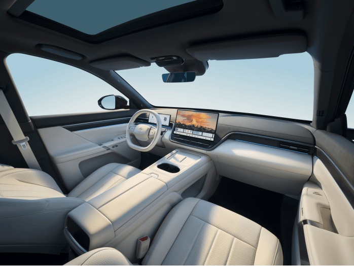 eπ008用5米車長(zhǎng)和3025mm軸距施展的空間魔法,精準(zhǔn)戳中多孩家庭的痛點(diǎn)。三排真六座布局配180mm中央通道,實(shí)測(cè)身高178cm成人入座第三排仍有兩指頭部空間,徹底告別“寵物專座”的尷尬。更精妙的是細(xì)節(jié)處的“家庭政治學(xué)”:二排獨(dú)立空調(diào)溫控屏解決夫妻溫度爭(zhēng)奪戰(zhàn),50W防滑無線充電面板終結(jié)“誰先用充電口”的爭(zhēng)吵,而升級(jí)2.5K分辨率的15.6英寸后娛屏,則讓后排孩子安靜得如同參加圖書館自習(xí)——這些設(shè)計(jì)堪稱家庭和諧的隱形守護(hù)者。
