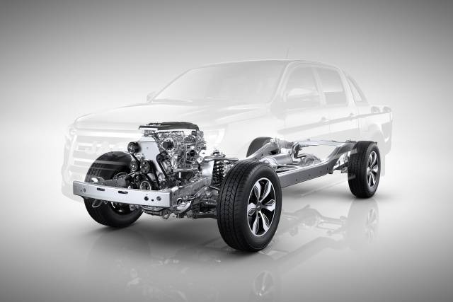 皮卡車(chē)宜商宜家,應(yīng)用場(chǎng)景百變,關(guān)鍵在于底盤(pán)。如果說(shuō)堅(jiān)固的非承載大梁是商用重載的基石,那么精心調(diào)校的懸架則是家用舒適的保障,強(qiáng)勁的脫困實(shí)力則是玩家越野的底氣。