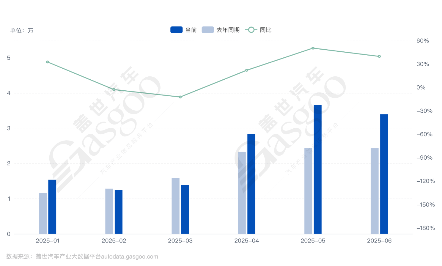 從市場(chǎng)數(shù)據(jù)來看,大型SUV市場(chǎng)相對(duì)小眾。根據(jù)蓋世汽車產(chǎn)業(yè)大數(shù)據(jù)庫數(shù)據(jù)顯示,2025年上半年,中國SUV整體市場(chǎng)累計(jì)銷量為711.9萬輛,同比增長12.6%。其中,大型SUV銷量為14.1萬輛,雖然僅占比約2%,但保持25.3%的同比增幅,顯現(xiàn)出潛在增長趨勢(shì)。