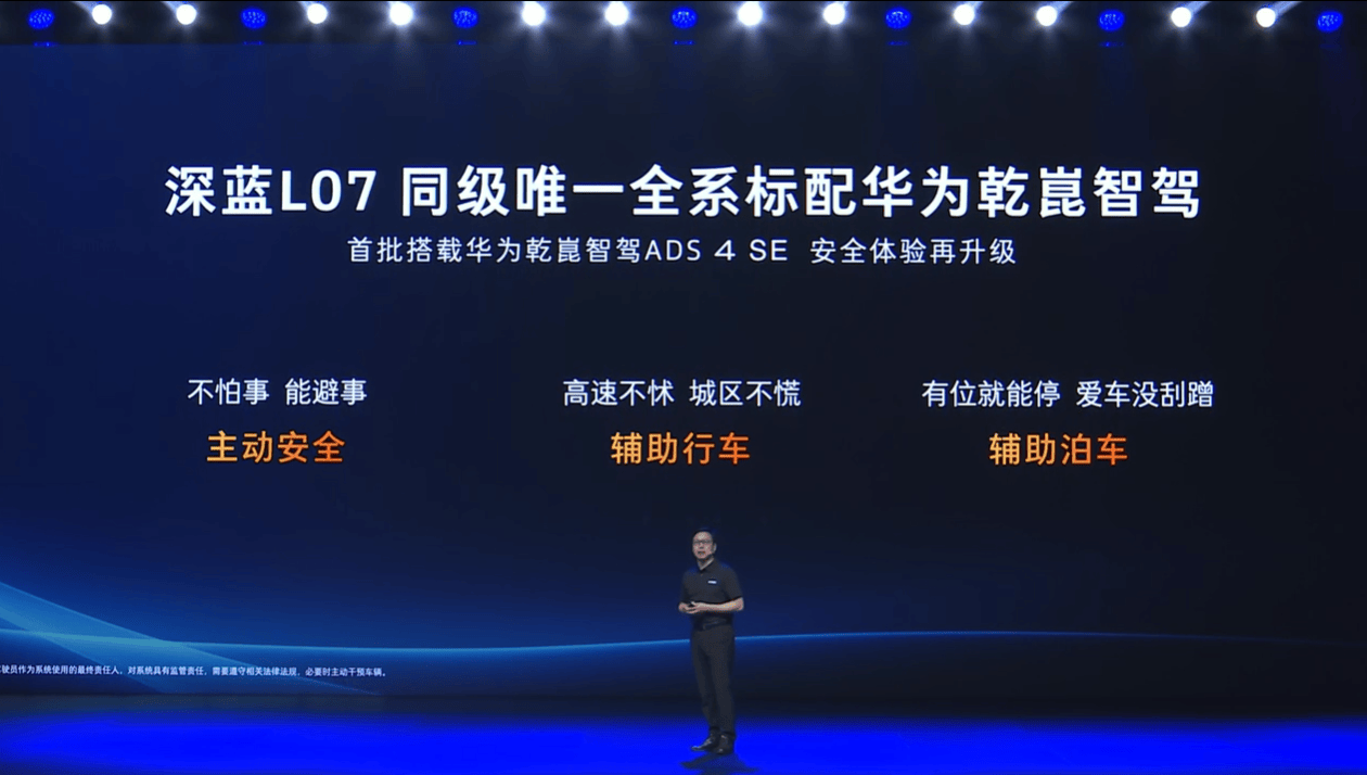 作為華為深度賦能的車型之一,2026款深藍L07還全系標配了華為乾崑智駕ADS SE,在智能輔助駕駛和安全表現上有著頭部水準。
