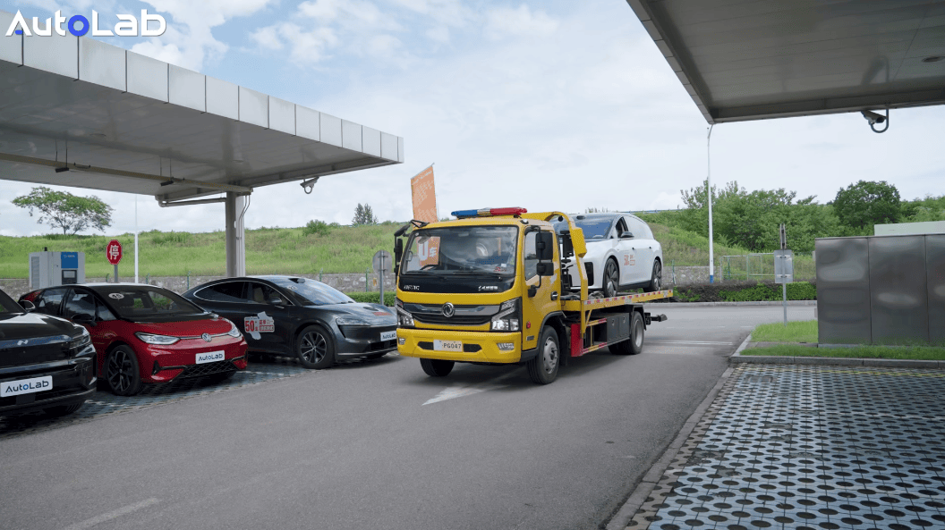 測完了續航,我們緊接著進行充電測試,由于在上一環節的極限續航測試過于嚴苛,不少車型已無力駛回充電站,直接趴在了高環上。