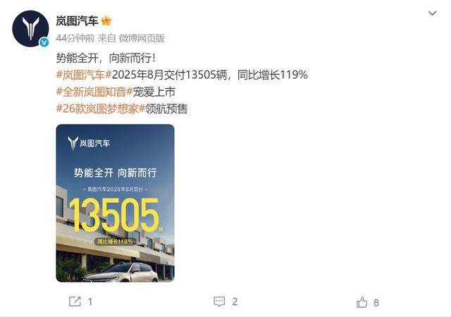 嵐圖13505輛,同比翻倍,智己6108輛,這些數字或許不夠震撼,卻代表著差異化的堅持。相比沖擊大規模,它們選擇了“慢即是快”的生存之道。