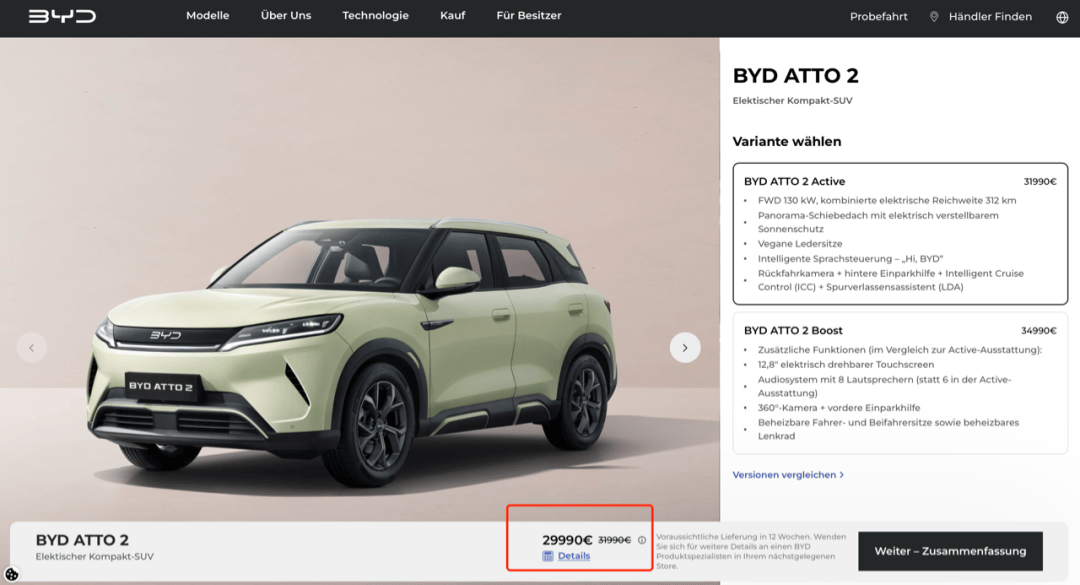 比亞迪元UP在德國起售價優惠完也要接近3萬歐,大約是國內起售價的3.3倍。
