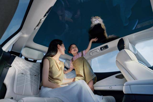 而座椅更是做到了“四座平權”,前后排都支持通風、加熱、按摩,靠背可調,后排甚至還配了小桌板和1700cm²的智能扶手。說是“移動頭等艙”,一點不夸張。