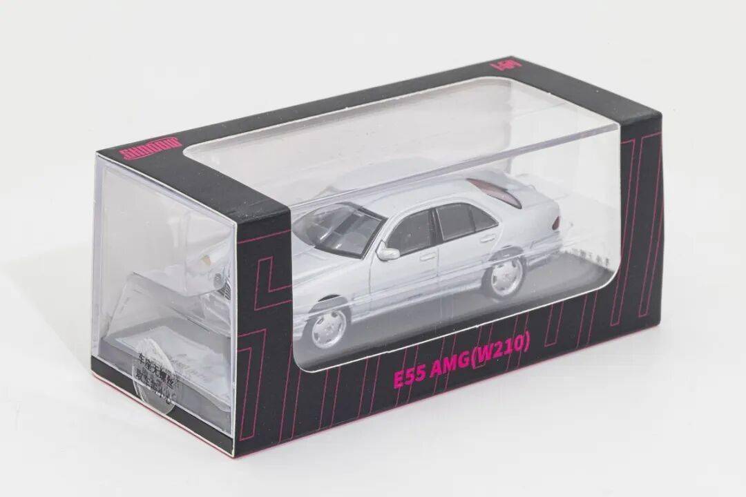 這次給大家介紹的這款E55 AMG (W210)模型來自Shadow這個品牌,也是我們 試玩的老演員了,模型的比例為1/64,材質為合金,本次試玩的E55 AMG (W210)其實是第一批上市的產品,一共有 銀色、白色、 黑色、 金色、 藍色5個配色,最新上市的第二批有 紅色和 綠色,模型官方價格49元(實際到手會更低),產品還附送了透明展示盒,這一款E55 AMG (W210)模型走的是性價比路線,而且這個比例好像也沒有那個品牌推出過,喜歡德系經典的收型黨不要錯過。