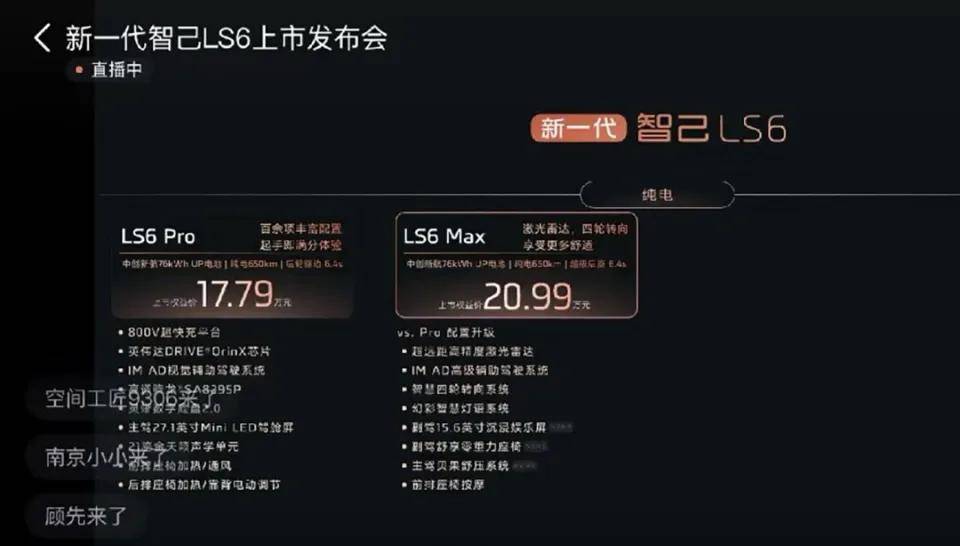是的,你沒(méi)看錯(cuò)。在公布價(jià)格環(huán)節(jié),發(fā)布會(huì)的直播畫(huà)面,出現(xiàn)了LS6 Pro 17.79萬(wàn)元的畫(huà)面,但在最后展示的所有車(chē)型價(jià)格里,LS6 Pro的售價(jià)又變成了19.79萬(wàn)。