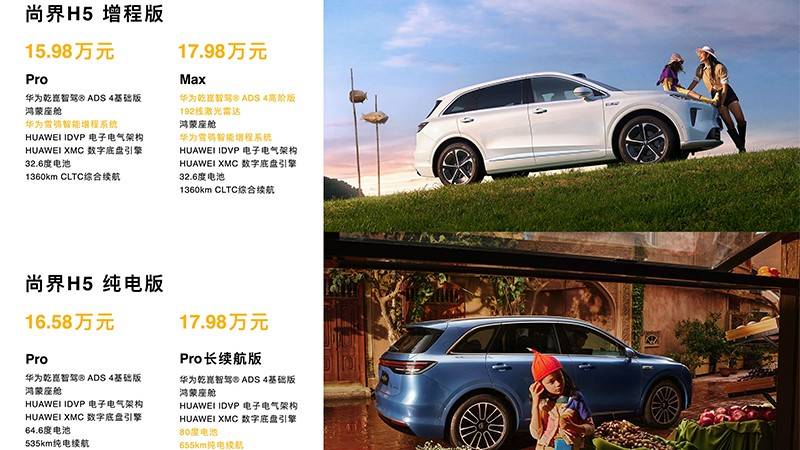 不過,放眼整個國內市場,價格在20萬內,同時帶滿血華為的增程車并不多。而尚界H5把以上的三個條件做到了17.98萬元。