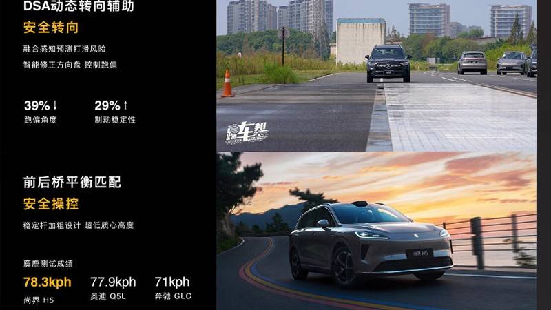 尤其是在底盤上,因為有了華為華為XMOTION數字底盤的加持,尚界H5百零制動距離僅34.2米,優于同價位多數競品;麋鹿測試78.3km/h,優于奧迪Q5L和奔馳GLC,拉開了和傳統燃油車的差距。