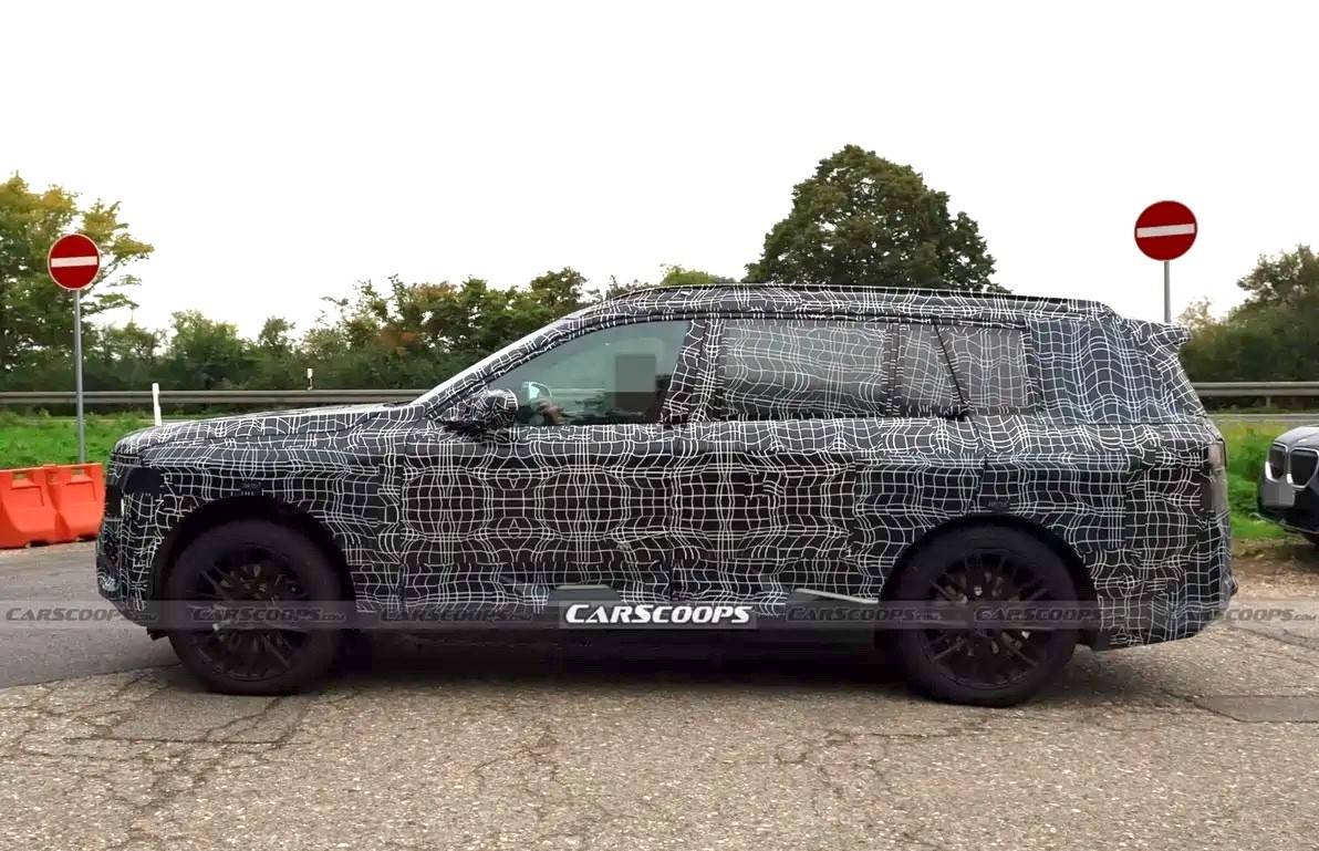 日前,我們從海外媒體獲悉了一組寶馬旗下全新新能源SUV——全新寶馬iX7的諜照。照片中可以看出,新車仍貼有重度偽裝,不過部分細節已經比較明晰。其中設計層面,新車將采用Neue Klasse設計語言,基于CLAR平臺打造而非純電專屬平臺,預計將在2027年首次亮相。