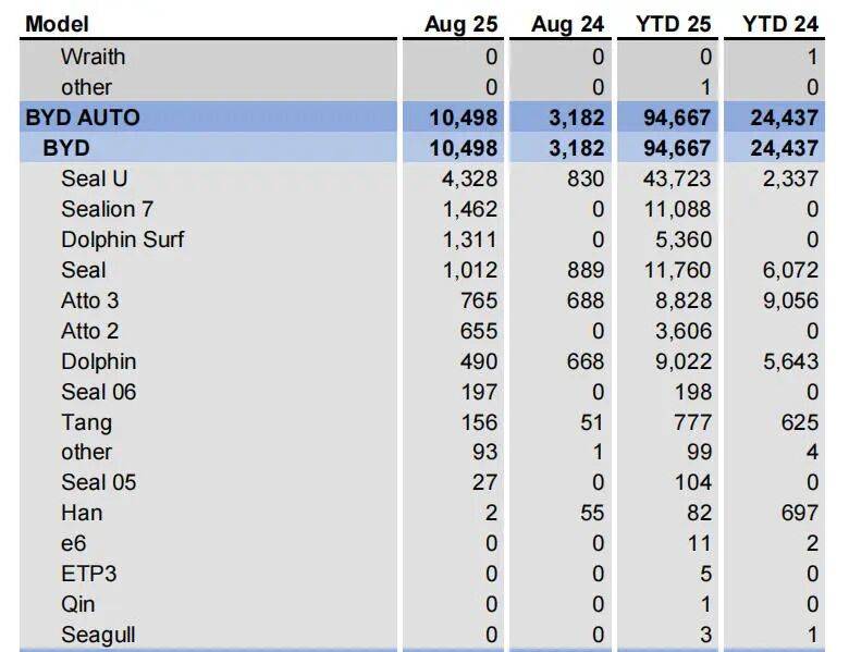 比亞迪是歐洲市場傳統中國車企中的增幅冠軍,8月銷量達10,498輛,同比暴漲230%;1-8月累計銷量94,667輛,增幅高達287%,9月即將突破10萬輛。值得注意的是,比亞迪正加速從純電導向轉向插混與純電并行。