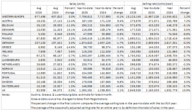 不過今年1-8月歐洲整體車市仍保持平穩,累計銷量僅微增0.3%,達8,703,088輛,其中歐盟、英國、冰島、挪威、瑞士市場貢獻了97%的銷量。