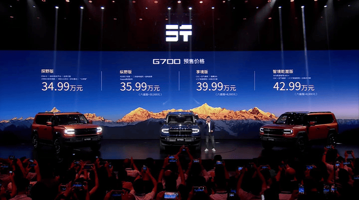 從市場來看,G700的預售價處于合理區間。參考來看,同級的方程豹豹8、坦克700Hi4-T也均處于40萬級,而國產的指導起售價甚至比G700頂配還要高。