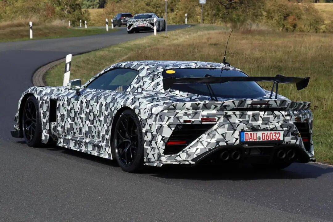 豐田旗下的豪華品牌近來重返了紐堡賽道,并且一下就帶來了超級跑車LFR的三種變體。其一是僅有小型一體式尾翼的版本,其二是帶一個中型尾翼的版本,其三則是帶有大號尾翼和碳纖維前唇的版本。不過我們并沒有成功拍攝到中型尾翼版本的測試車。