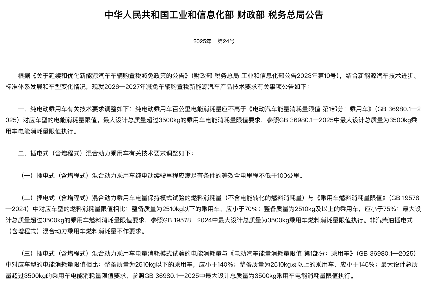 然而,政策環境的變化也為市場格局增加了不確定性。根據三部委聯合發布的《關于延續和優化新能源汽車車輛購置稅減免政策的公告》,自2026年起,插電混動(含增程式)車型的純電續航里程需“不低于100公里”,方可享受購置稅減免。